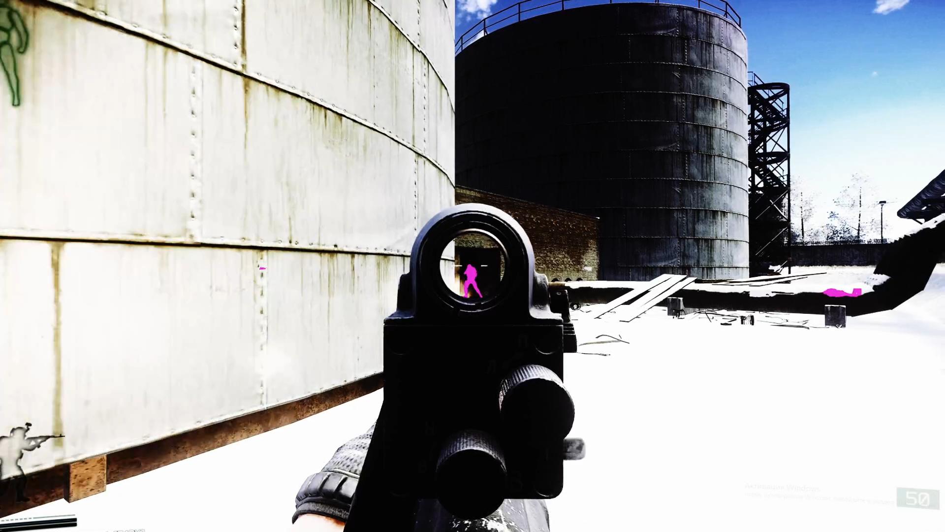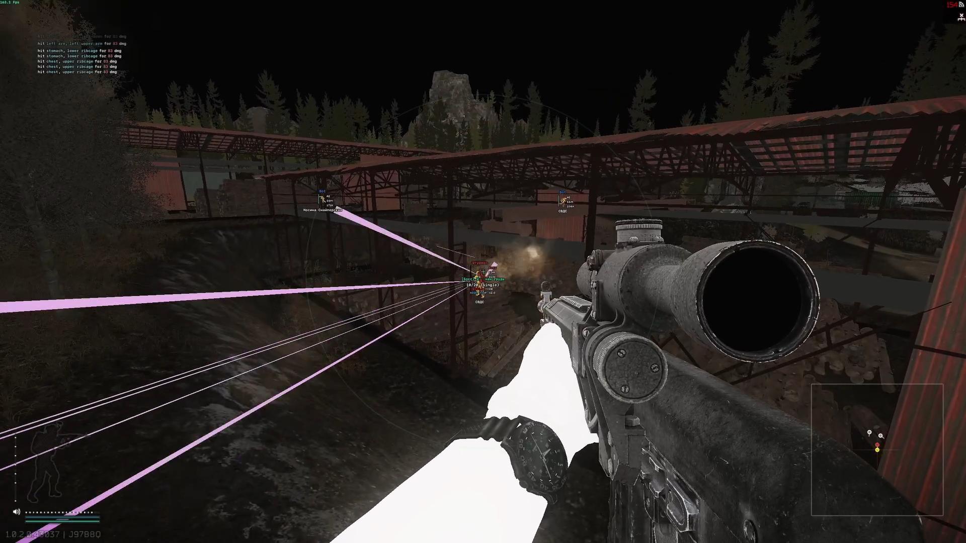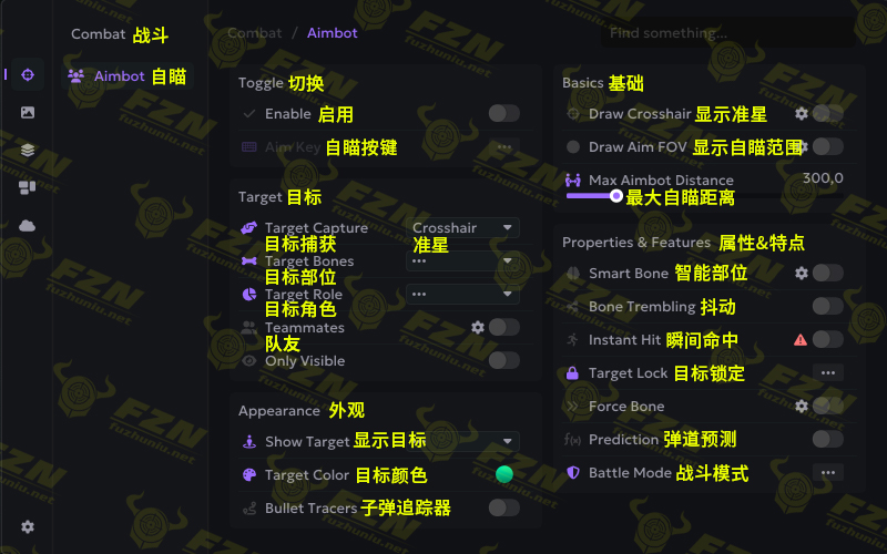 子弹自动追踪至敌人眼部、下颚,子弹无下坠,弹道显示