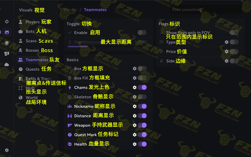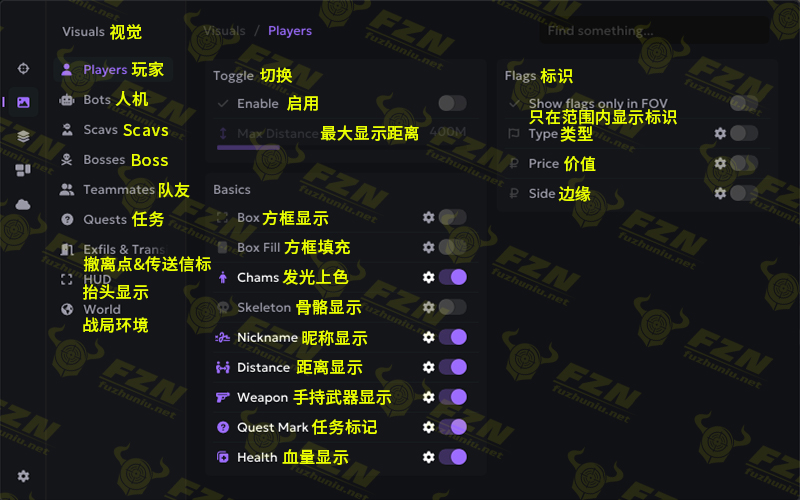 战局内玩家显示,骨骼显示、玩家上色、信息显示