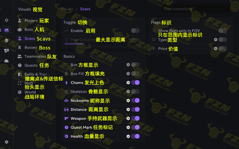 可自定义人物、物品显示颜色